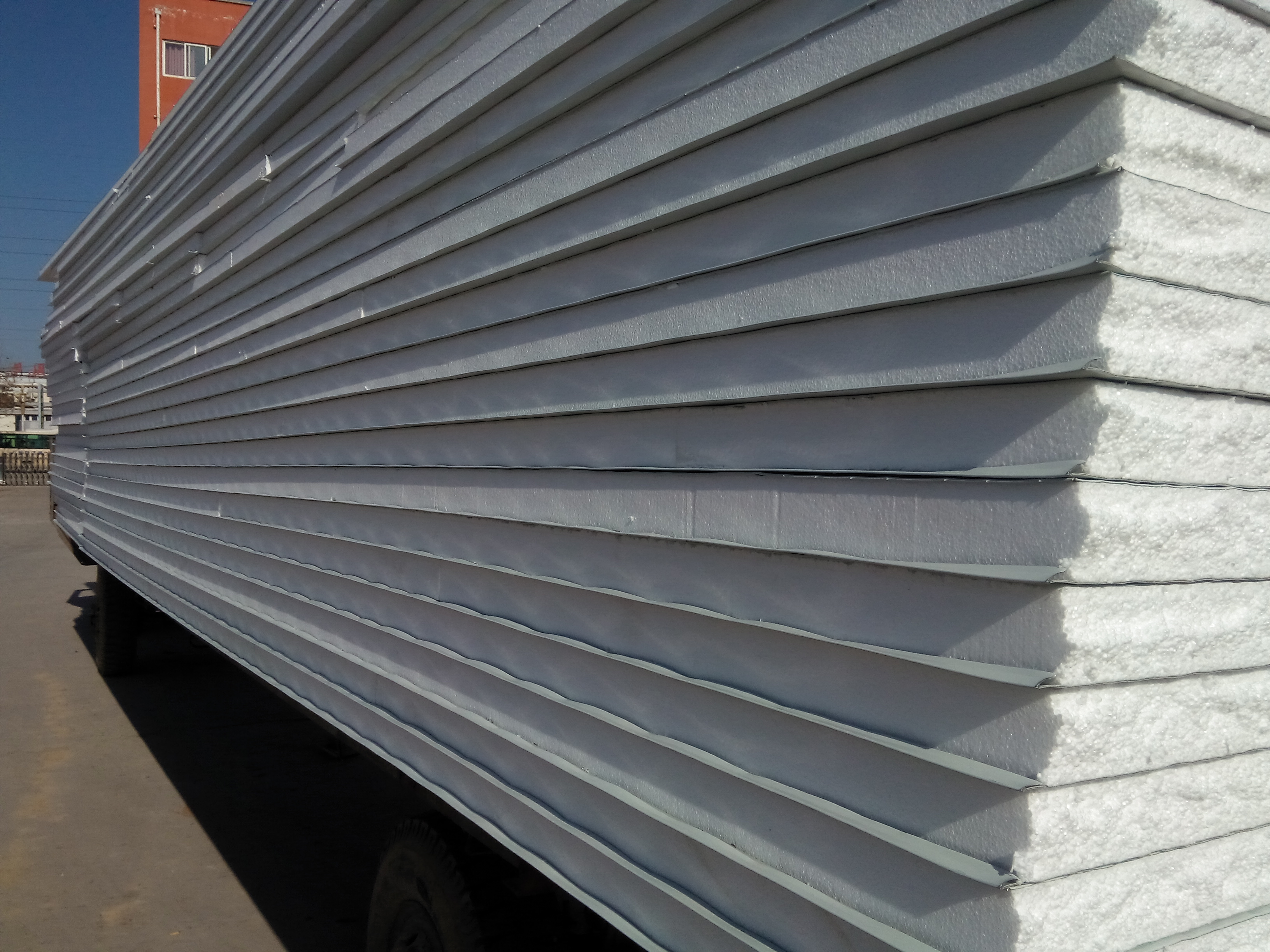泡沫復合板:由可發性聚苯乙烯(EPS)顆粒為原料,外形像化肥顆粒,經加熱預發泡,成白珍珠似的較大顆粒,再在模具中加熱壓制成型而制成的具有微細閉孔結構的泡沫塑料板材,由于防火性能差,多用于臨時建筑。